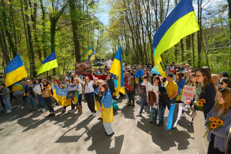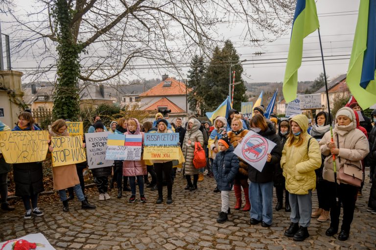 A hundred demonstrators gathered outside the Russian Embassy in Luxembourg on Saturday to demand an end to the Russian invasion of Ukraine. The protest calls against Russian aggression in Ukraine