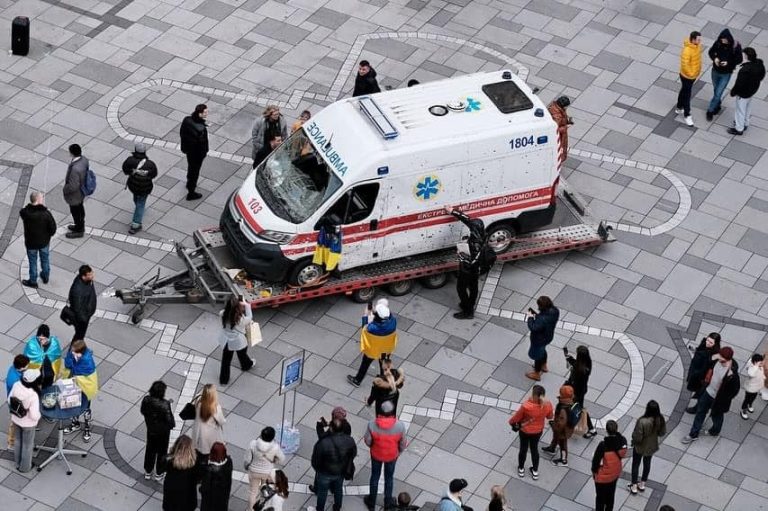 This bullet-ridden ambulance, shot in 2022, is a horrifying symbol of russian aggression. Despite their denials, russia’s actions speak volumes—they target civilians, doctors, and rescuers. With YOUkraine and Unlimited Democracy – Verein zur